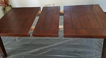We got the table ready by placing a drop cloth underneath to protect our wood floors and to ensure an easy clean up area. We unlocked the hinges to remove the leaf and pulled the table as far apart as we could to make sure we could paint everything!