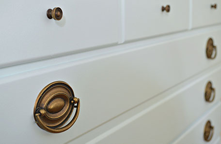 The new pulls were the same size as the old ones, so I didn’t have to drill new holes. The new pulls fit perfectly, and I love how they look with the beautiful new paint color. Now, all that was left to do was to add a few pretty touches and it was ready for our extra clothes.