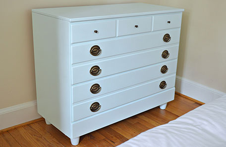 Paint can truly be transformative and I was excited to see what the change would do to my dresser. This piece was going to live in our guest bedroom, so I wanted to choose a light, soft color to really transform it.