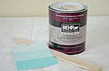 Looking over the beautiful Behr paint color chips at The Home Depot, I quickly narrowed my choices to the soft blue/green tones and chose BEHR PREMIUM PLUS® Interior Eggshell Enamel in Sea Ice. I had the paint technician mix up one quart in new favorite color and headed home, excited to start my dresser transformation.