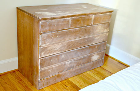 Now that the legs were done and my dresser was standing taller, it was time to prep it for paint. The dresser was not in good shape so I knew that I would need to do a lot of prep before I could begin painting.
