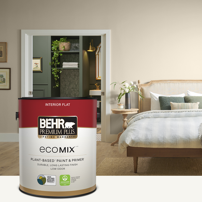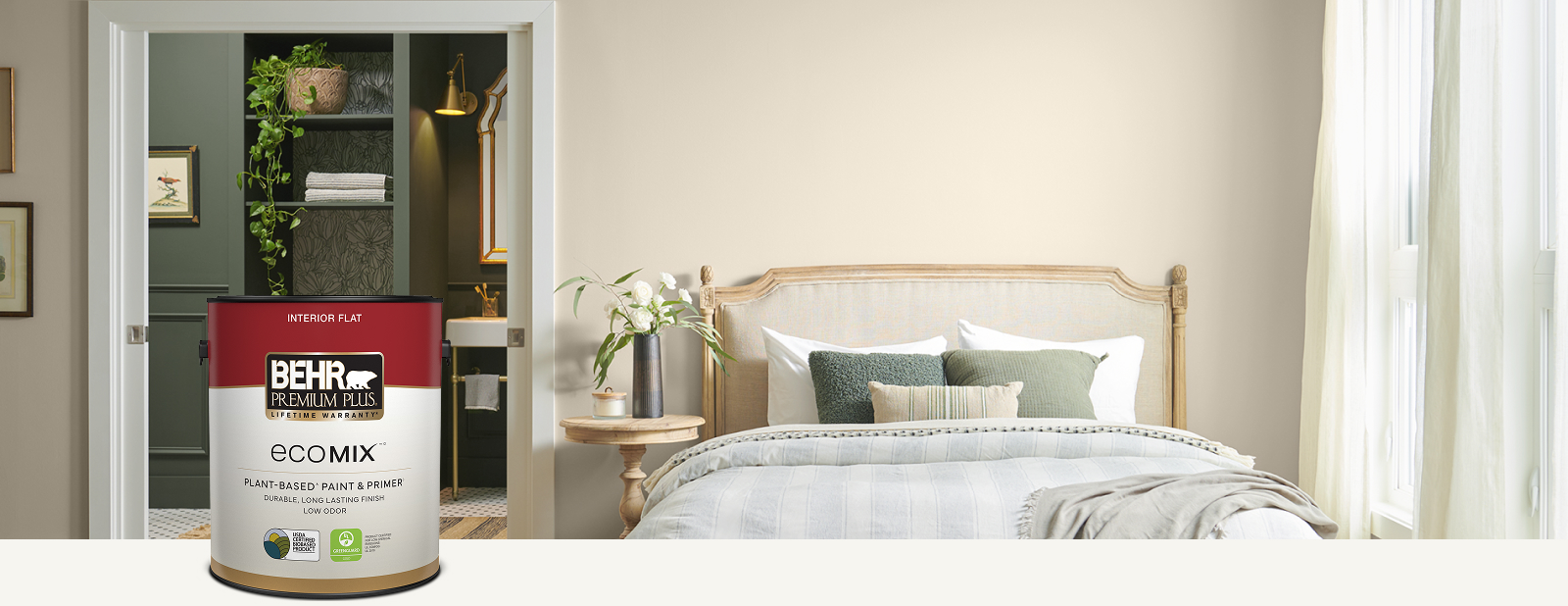 Now in a plant-based formula, BEHR PREMIUM PLUS® ECOMIX™ Plant-Based Paint & Primer, where sustainability meets performance.