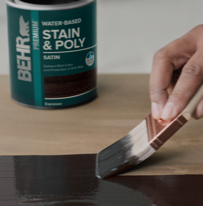 BEHR PREMIUM® Water-Based Stain & Poly in One delivers rich color and protection in one easy step.