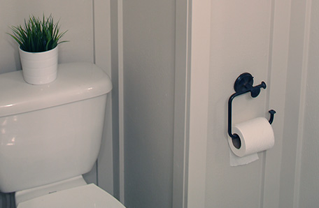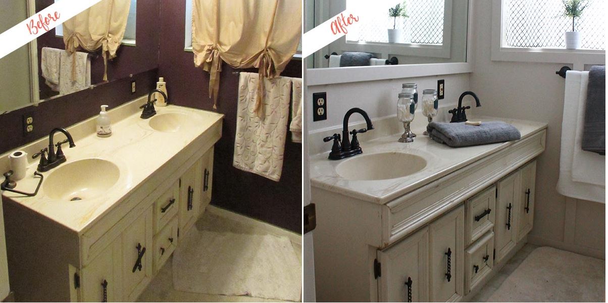 So, I decided to undo what I did to it and give it an update with a fresh coat of paint and some board and batten. Taking it from the inside of an eggplant to a modern cottage feel. This updated bathroom now matches the rest of her house; I just bet she wished it had happened sooner!