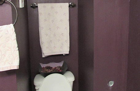 Since I moved out years ago, the bathroom sadly has stayed the same. Even though it is dark purple, I like to think of it as a step up from the pastel pink that was there before when my mom first bought the house. But I know she really wanted to update it and use it as a guest bathroom.