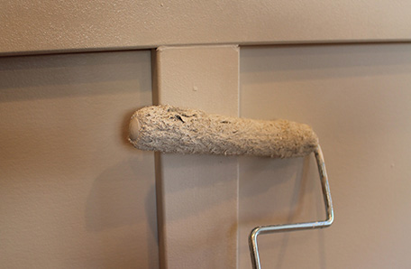 As the paint dries in the previous step, it’s a great time to give the molding a coat of paint. Since it is going on the bottom portion of the wall, I gave it one coat of the Chocolate Froth.