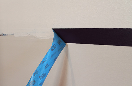 Once the paint was dried, I then removed the painter's tape revealing a dark purple line. Not to worry though, this is going to be covered by the molding.
