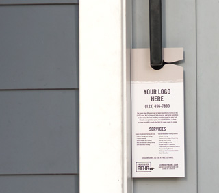 Reach out to the neighbors with professionally designed door hangers. When used with yard signs in a residential area, there’s no doubt who’s responsible for the eye-popping home transformation on the corner. Hang these full-color, two-sided door hangers with a list of services you offer.
