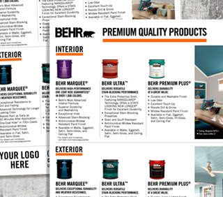 But taking the time to write, design, and produce these items takes you away from doing your ultimate priority, serving your customers. So, let Behr Paint Company do it for you. Add the following items to your marketing arsenal in the colors that complement your brand.