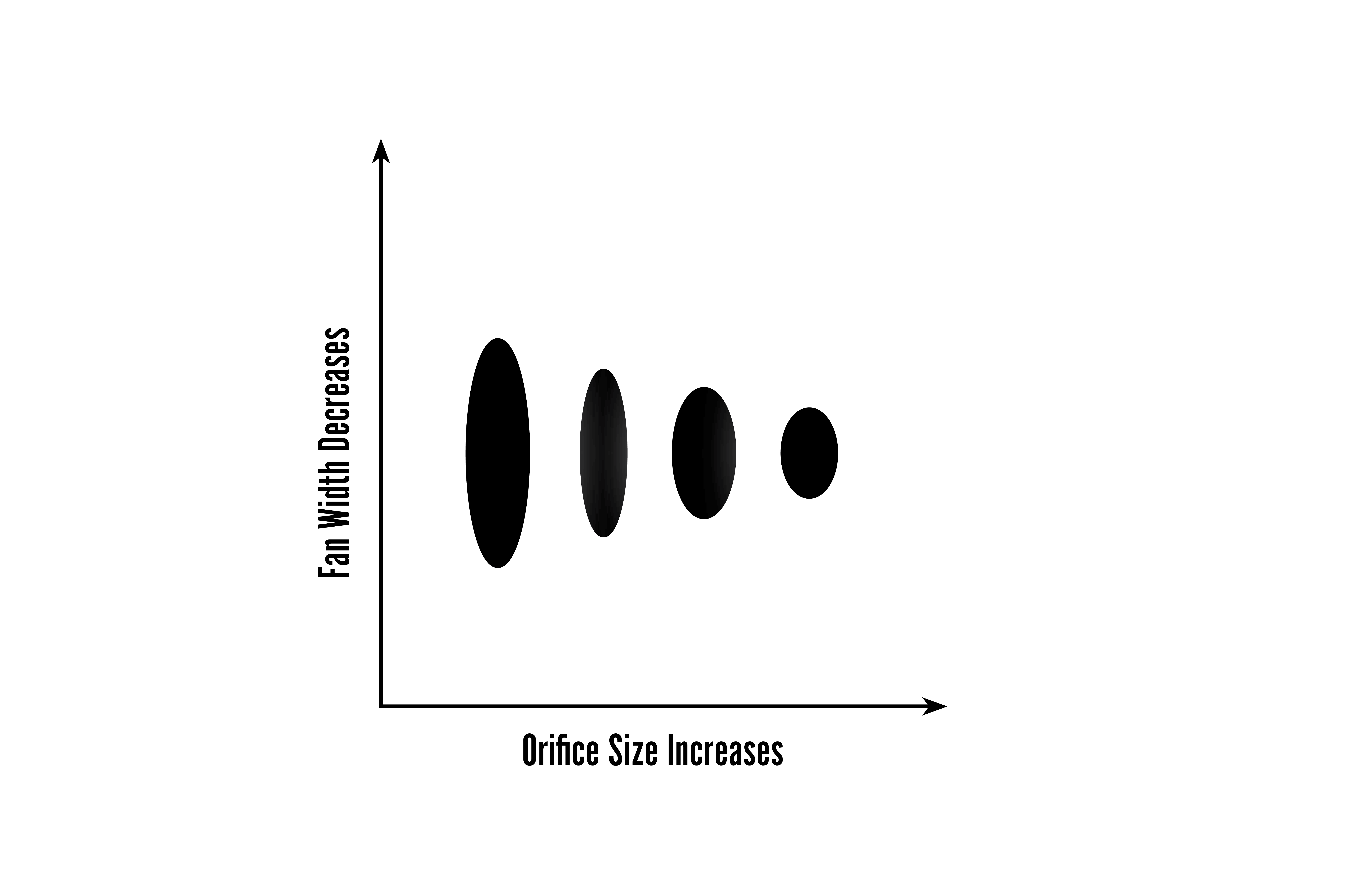 It’s important to replace a tip when it gets worn to make sure you get a precise spray pattern, maximum productivity, and quality finish on your project. As illustrated above, when a tip wears, the orifice size increases, and the fan width decreases. This causes more paint to hit a smaller area, which wastes paint and slows productivity.