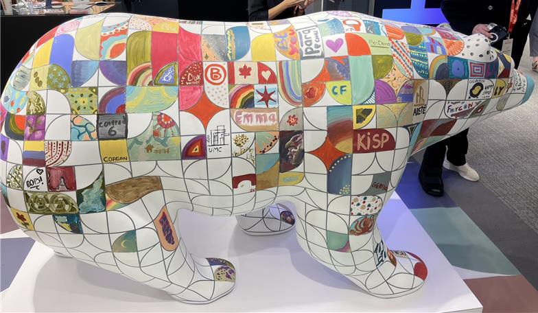 Imagine painting a bear… a BEHR bear. At NeoCon, Behr Paint typically has this life-sized bear for guests to paint, and each year is a new design on the bear. It’s a creative approach to showcasing their brand. In the middle of the booth, this 3D bear is sectioned off into small squares, each about three inches wide, and it was the talk of the show. I loved seeing how the bear changed with each visitor! This collaborative art piece became an unexpected emotional moment for many of us.