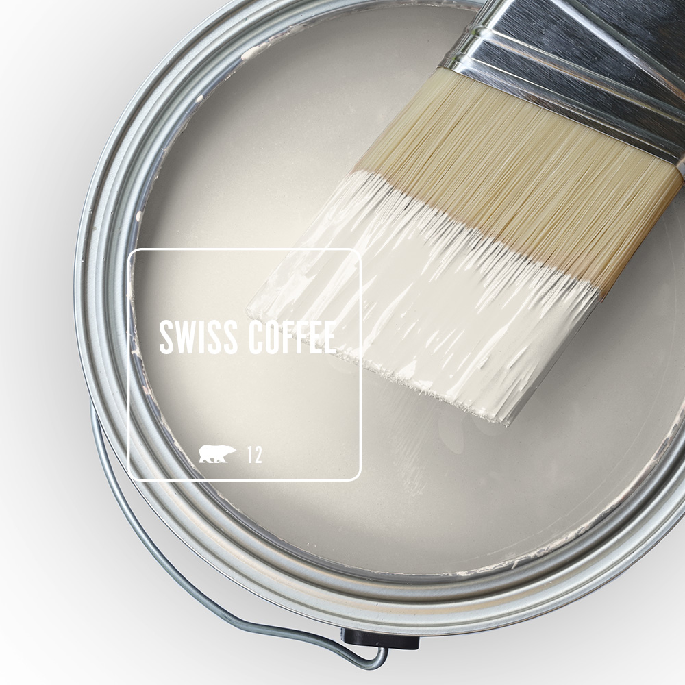 Swiss Coffee — A Behr favorite for decades, this classic, creamy white has an 84 light reflectance value (LRV) and is great for both exterior and interior uses.