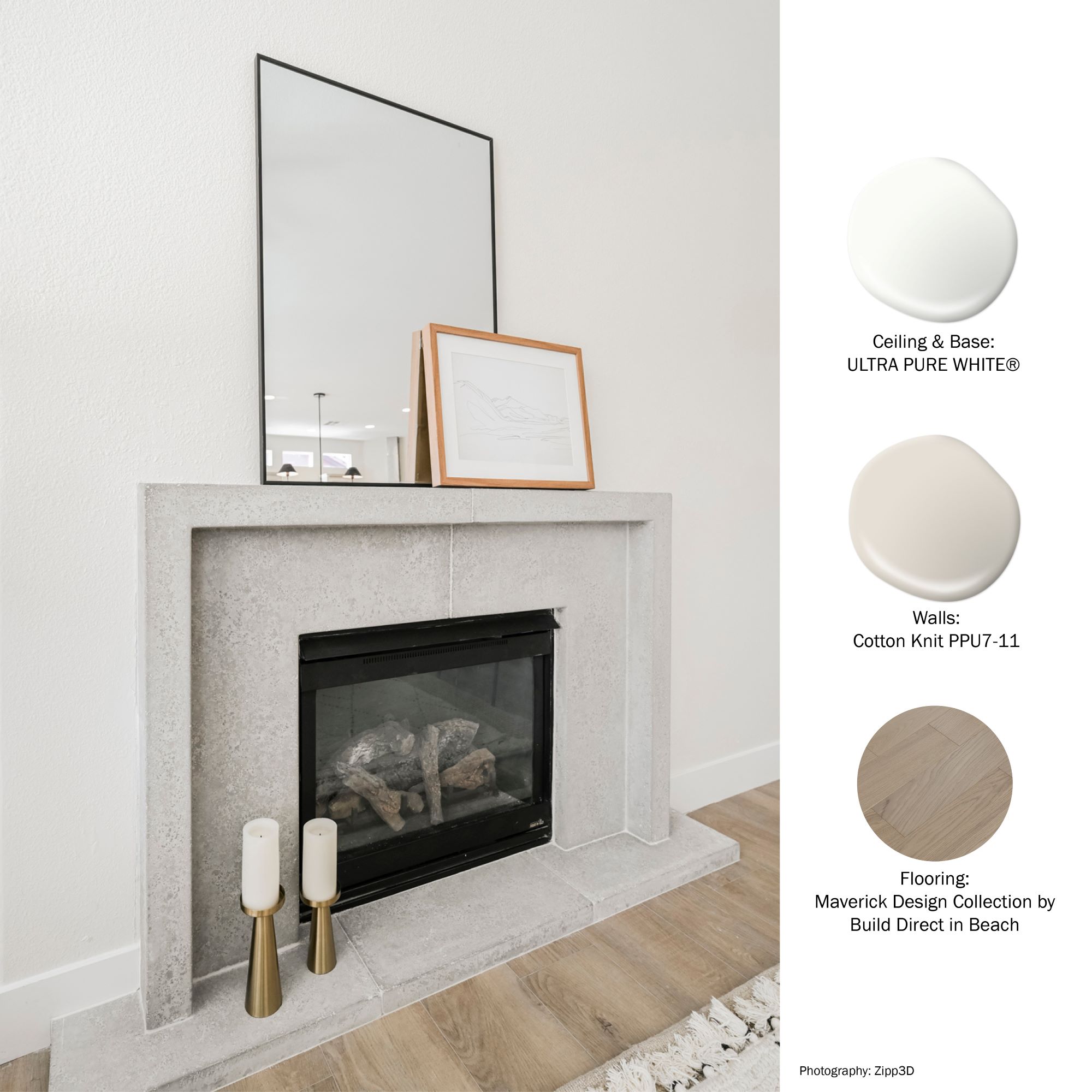 Ceiling & Base: ULTRA PURE WHITE® paint, Walls: Cotton Knit PPU7-11, Flooring: Maverick Design Collection by Build Direct in Beach