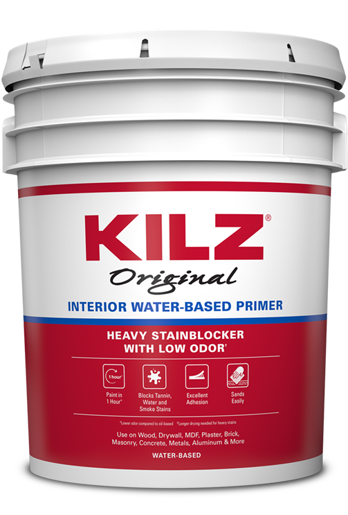 Designed to deliver the same heavy stain blocking, smooth flow and leveling, sandability, and excellent adhesion as our KILZ Original Interior Oil-Based Primer while bringing the conveniences of water base such as low odor, low VOC’s and easy soap and water clean-up!